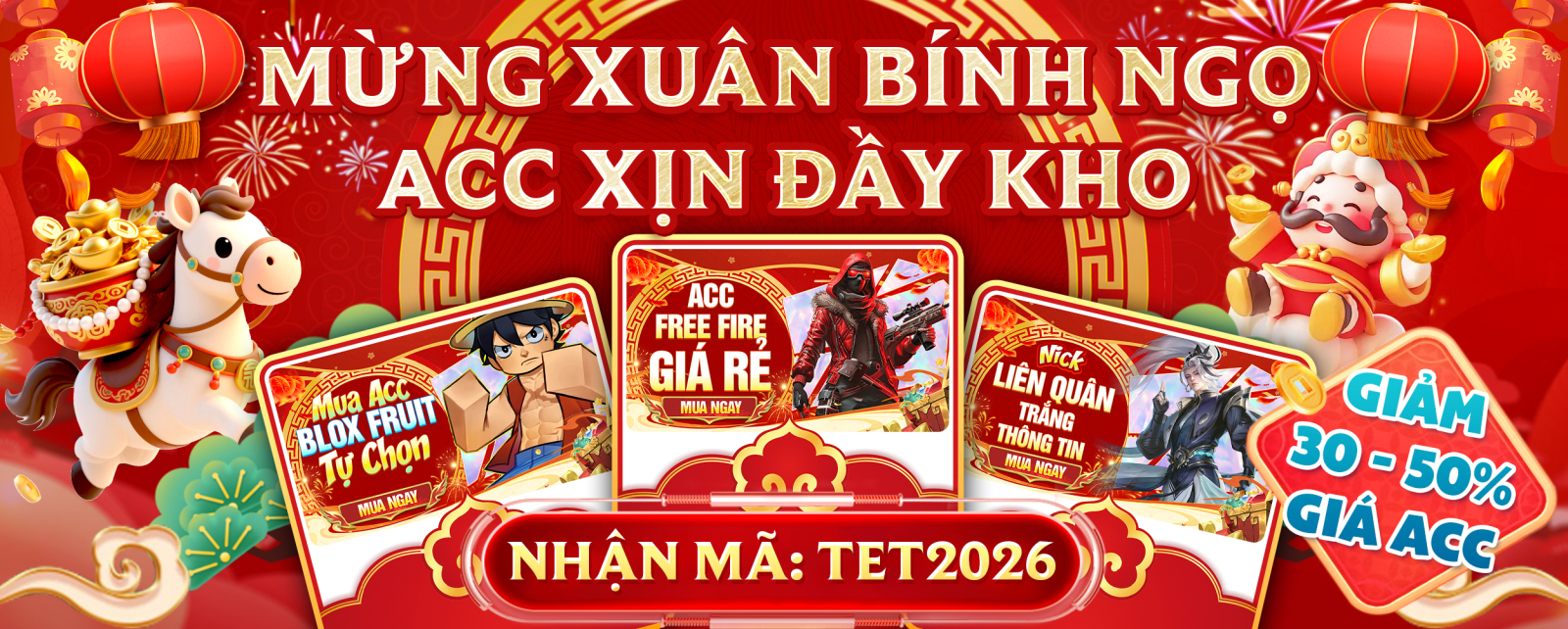 Các mục nick đa dạng: Nick Liên Quân Trắng Thông Tin, Nick BloxFruit Tự Chọn, Nick Grow A Garden Tự Chọn, Nick Free Fire Giá Rẻ.